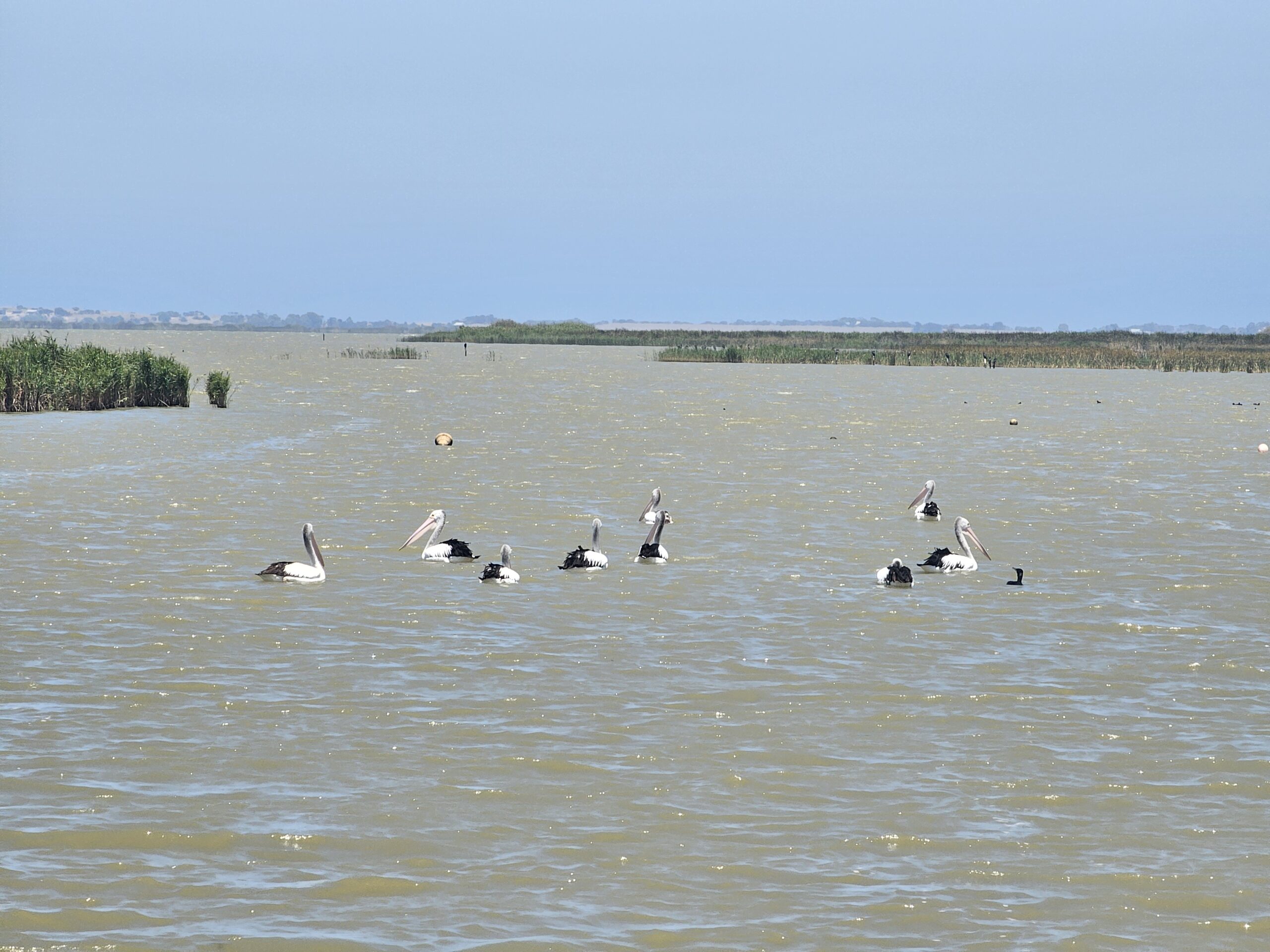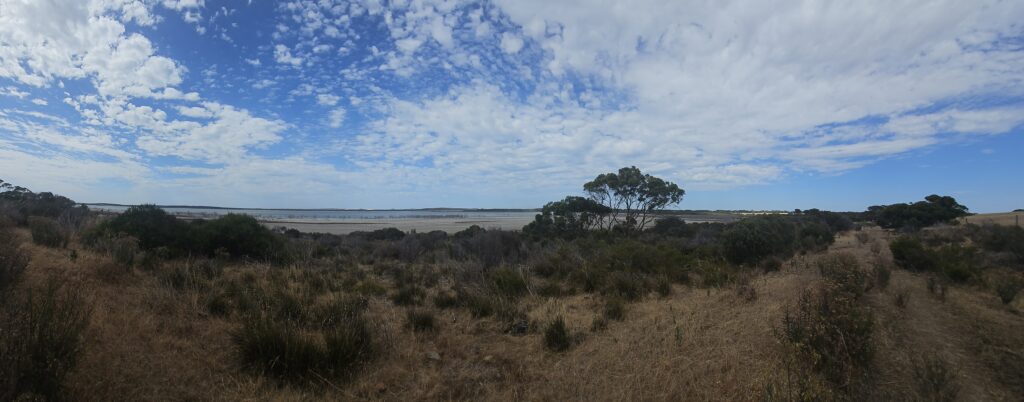 Wir trotzten den 40°C und unternahmen eine kleine Wanderung zur Murray Lagoon. Es war nur ein Fussmarsch von gesamthaft 40 Minuten, aber die Hitze war unerträglich. Kaum im Van hiess es nur noch irgendwohin wo es kühler ist. Wir fuhren dann bis American River, wo die Meeresbrise uns etwas erfrischte.