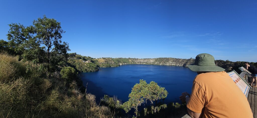 Von Murray Bridge fuhren wir der Küste entlang nach Cape Jaffa und dann weiter nach Mount Gambier. Das eigentliche Ziel Halls Gap erreichten wir nach den zwei Übernachtungen. Die Strasse unserer ersten Etappe von Murray Bridge nach Cape Jaffa war eine Herausforderung, denn es gab mehr Schlaglöcher als etwas anderes. Der ganze Haushalt hat auf dieser Fahrt geschäpperrrrrrrt. Das Resultat hatten wir dann am Morgen in Cape Jaffa, wo unsere Pneus nach Luft schrien. Das Geschrei war halb so wild. Wir fuhren von Cape Jaffa ins Land hinein nach Mount Gambier an den Blue Lake. Der Blue Lake war dann auch wirklich blau. Er ändert seine Farbe im Laufe des Jahres von Blau zu Grün, aber der Namen bleibt 🤣😂🤣