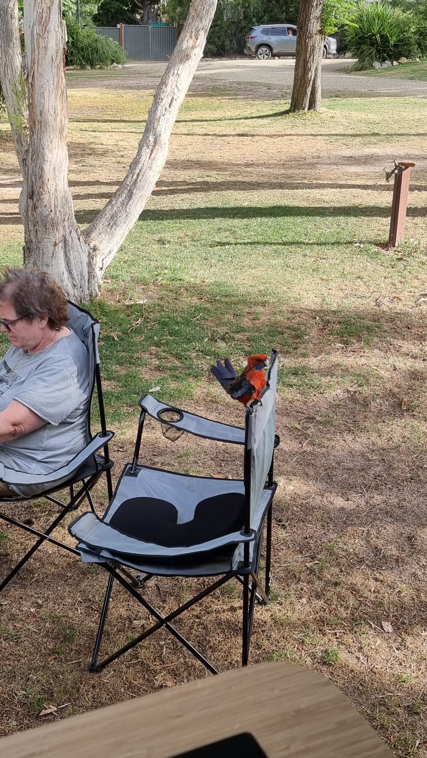 Auf dem Rückweg ins Camp noch 2 Eidechsen und viele Steine. Beim verdienten späten Lunch wird man belagert und sollte jemand aufstehen, sind hier sind die Kakadus wie bei uns die Spatzen!