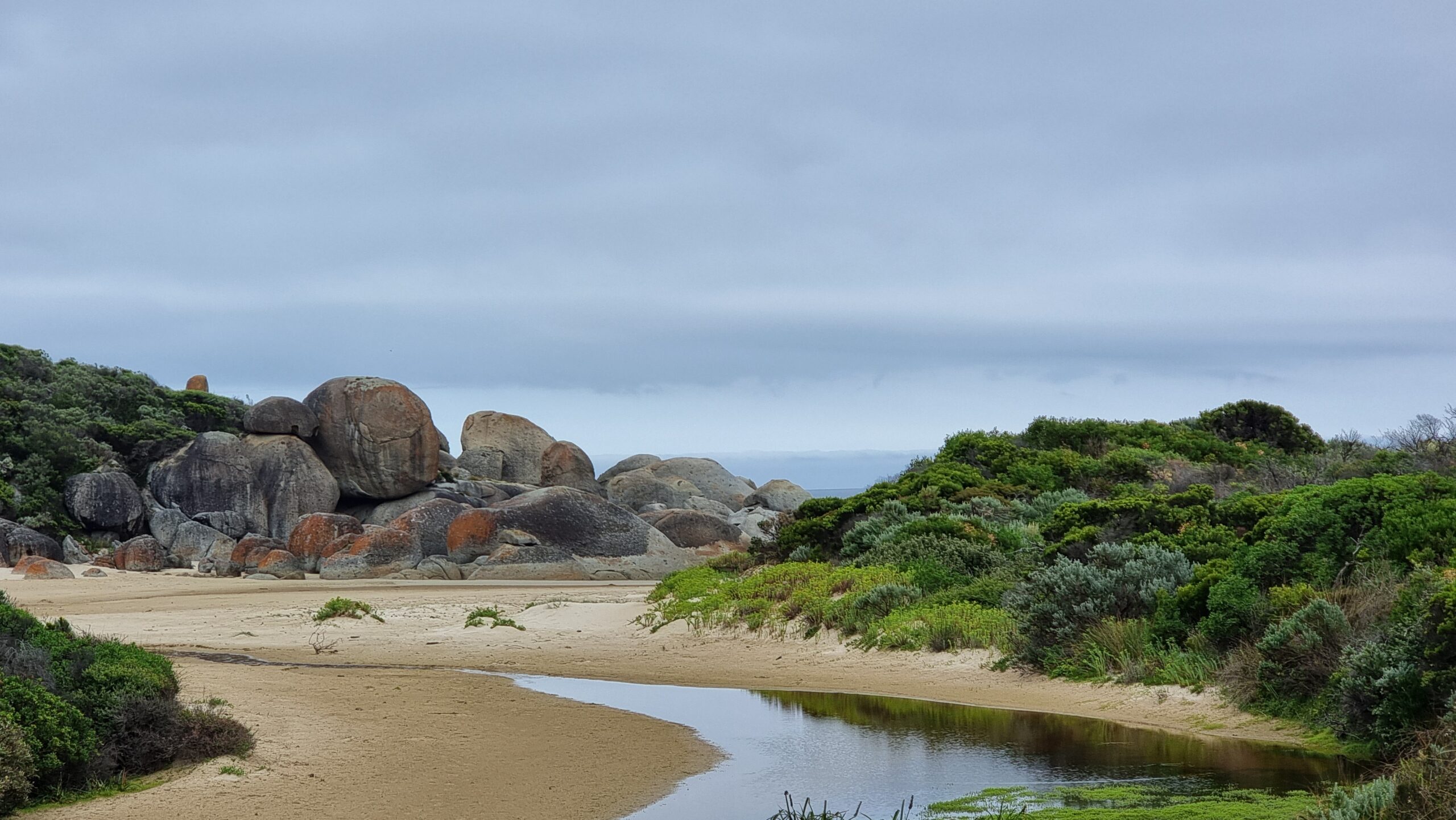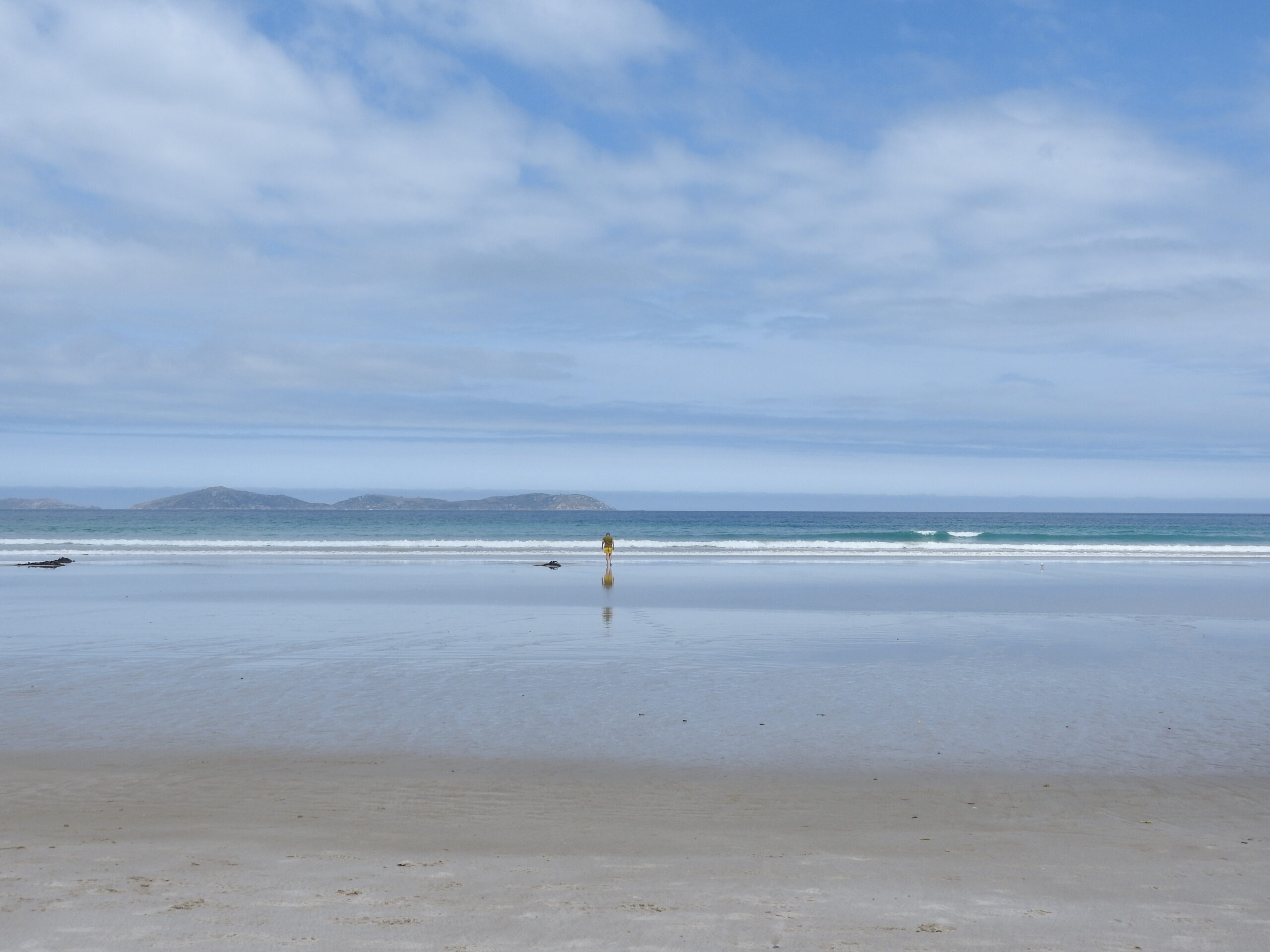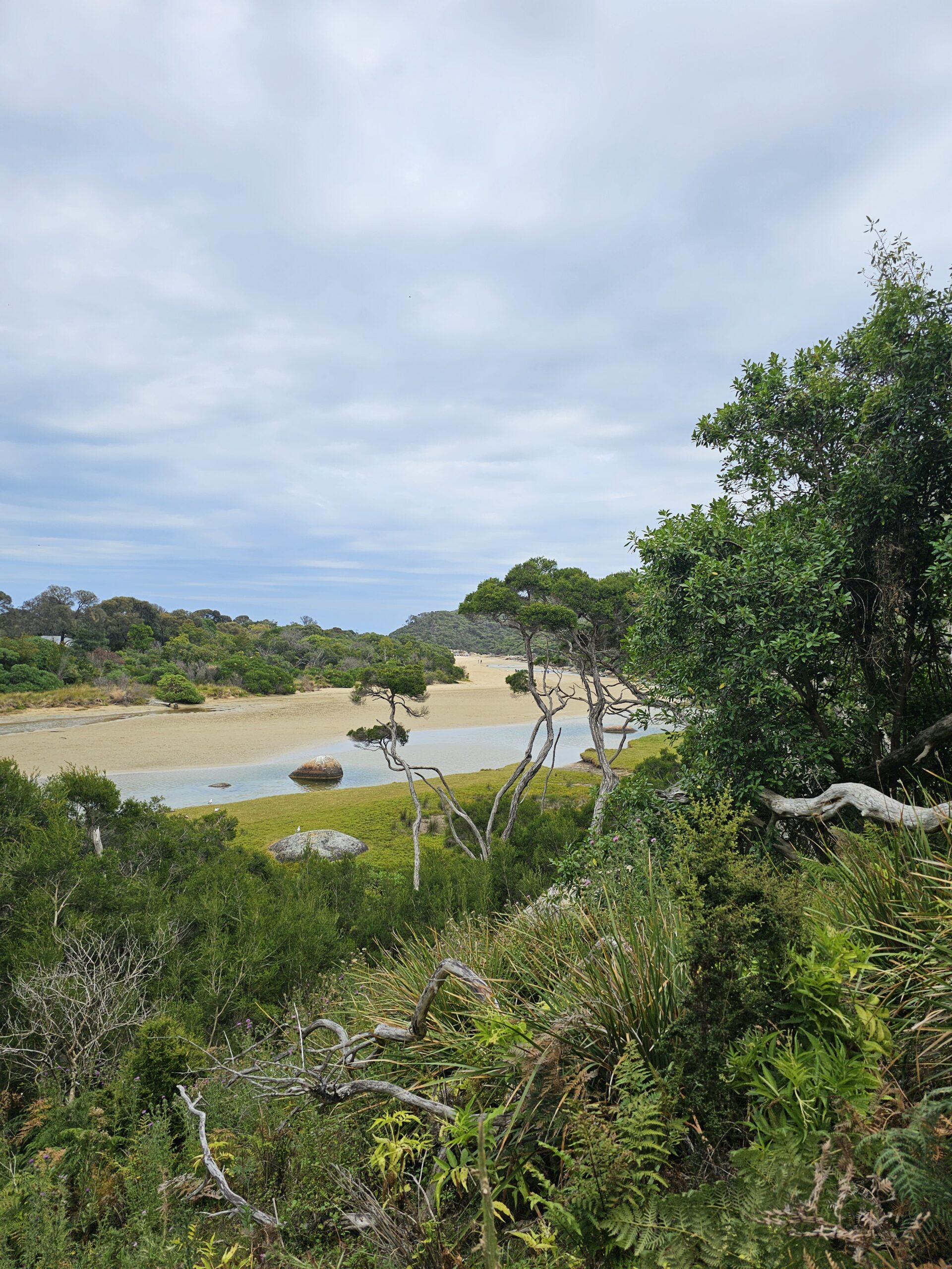 Wir trennten uns schweren Herzens von der Insel, aber das nächste Highlight stand vor uns: Wilsons Promontory National Park. Unser Campground lag etwas ausserhalb des Parks, aber das war okay, denn der im Park, war so etwas von jungen Partygängern überlaufen, dass es uns sicher nicht gepasst hätte. Wir hatten in der ersten Nacht schon Besuch eines typischen Australiers. Ein Wombat war vor unserem Duschhäuschen gemütlich am Futtern. Am nächsten Tag haben wir uns zwischen Kängurus bewegen können, die fast keine Scheu vor uns Touristen hatten und da hatten wir auch das Glück ein Emu Pärchen zu finden. Unseren Walk über die drei Beaches: Whisky-Picnic-Squeeky war dann noch gekrönt von einem Einfangen eines Jungvogels, eines Hooded Plover (Haubenregenpfeifer). Der Parkranger erklärte uns, dass es der erste Jungvogel seit Jahren sei und sie ihn einfangen um ihn zu kennzeichnen.