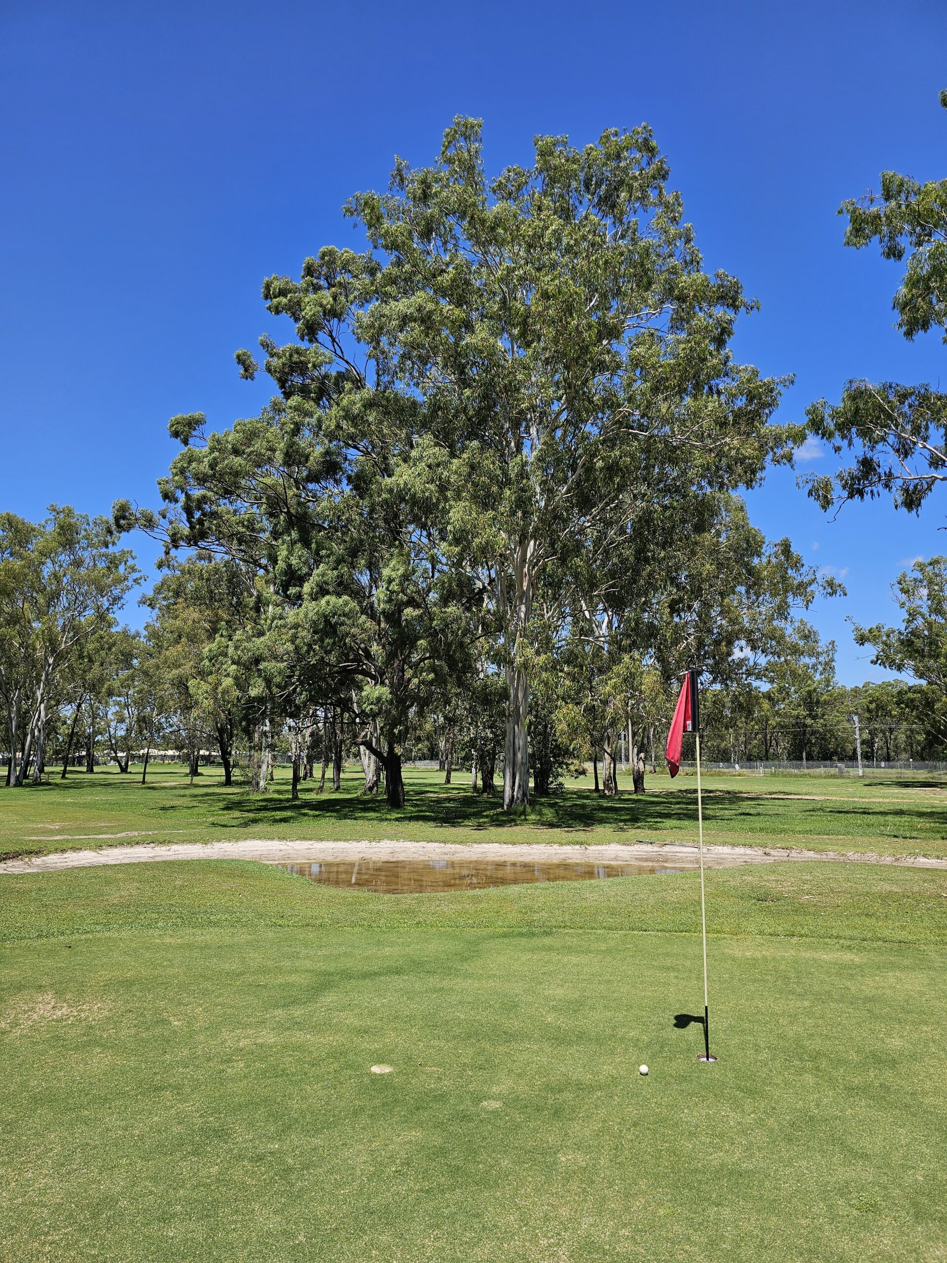 Wir hatten Gladstone ausgewählt, weil wir endlich wieder golfen wollten. Es ist zwar heiss und schwül, aber golfen geht immer 🤣